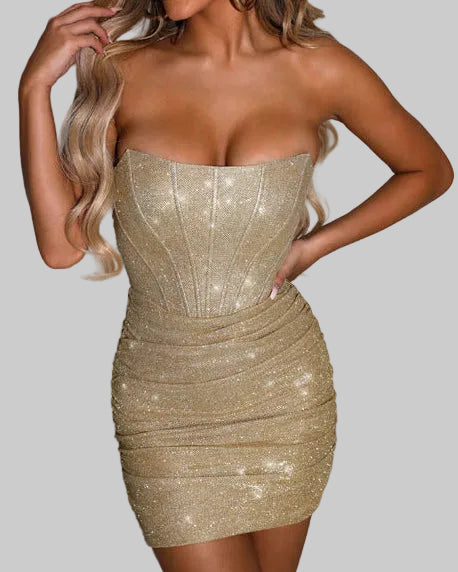 ZAZNACZ WYRAŹNY AKCENT STYLIZACJI Z MINI SUKIENKĄ BEZ RAMIĄCZEK!