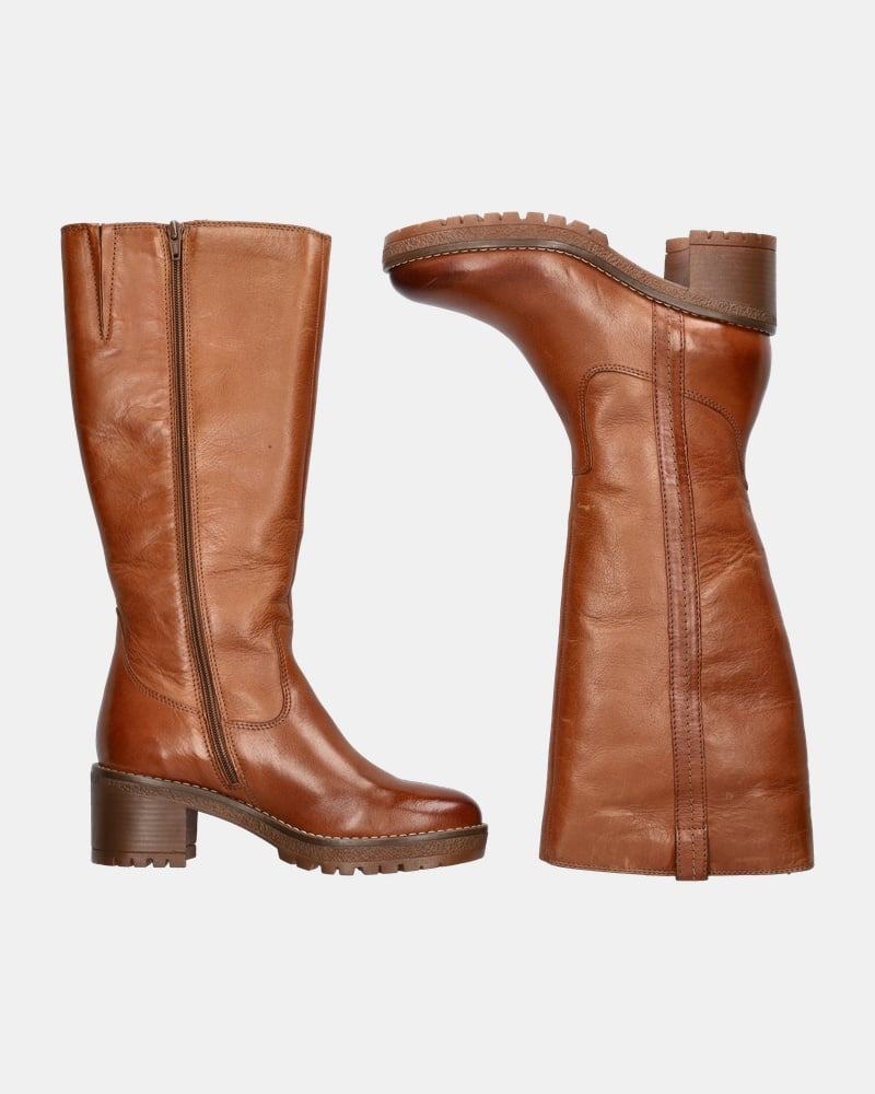 - Wyrazista wysoka cholewka: tworzy efektowną linię nogi, która podkreśla proporcje stroju i nadaje mu wyrazisty charakter. Dzięki temu można je łączyć zarówno z długimi płaszczami, jak i krótszymi kurtkami czy swetrami, uzyskując różnorodne efekty wizualne.
