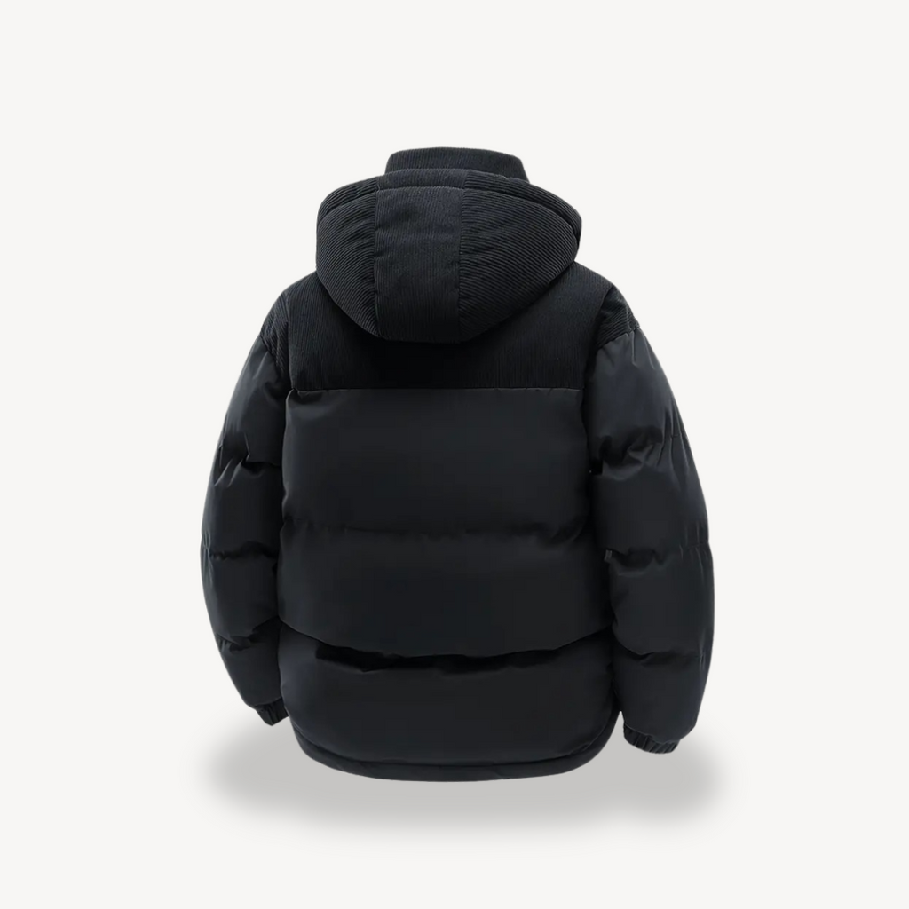 - Kaptur ze sztruksowym wykończeniem, który nie tylko nadaje kurtce wyjątkowego charakteru, ale też zapewnia dodatkową warstwę ochrony w chłodniejsze dni