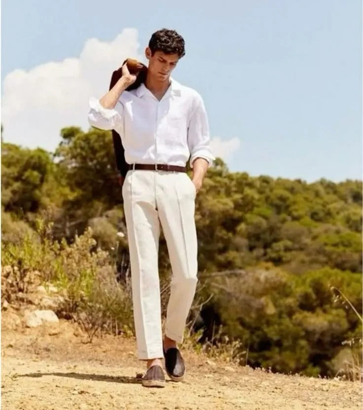 Męskie spodnie z zakładkami łączą w sobie klasyczną formę z nowoczesnym podejściem do męskiej mody. Starannie opracowany krój nadaje im uporządkowany wygląd, który dobrze sprawdza się w różnych kontekstach – od spotkań towarzyskich po bardziej oficjalne sytuacje. Zakładki z przodu tworzą delikatny akcent konstrukcyjny, podkreślając harmonijny charakter całości. To propozycja dla osób ceniących ponadczasowy styl i dbałość o każdy szczegół.