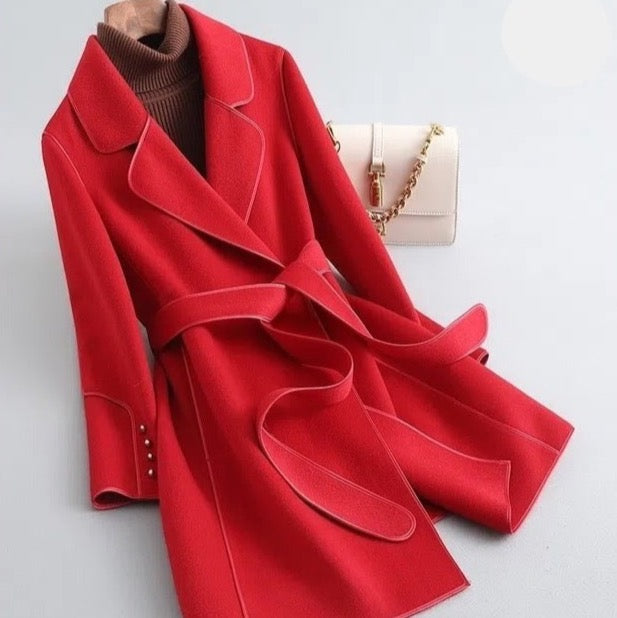 - Długi krój: Płaszcz sięga poniżej kolan, co nadaje mu wyraźny kształt i proporcje. Tego rodzaju długość tworzy spójną linię i sprawia, że płaszcz prezentuje się w sposób uporządkowany, zachowując estetyczny wygląd podczas codziennego użytkowania.