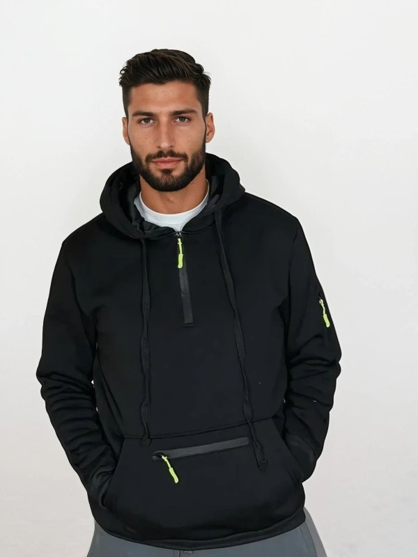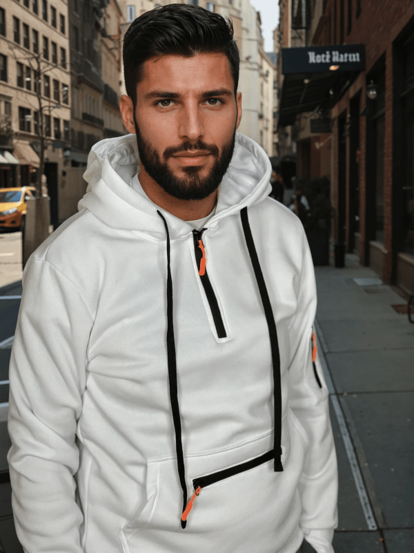 - Regulowany kaptur: Kaptur z możliwością dopasowania daje swobodę wyboru, co sprawia, że bluza dobrze spełnia swoją funkcję zarówno podczas codziennych aktywności w mieście, jak i w trakcie spokojniejszych chwil na świeżym powietrzu.
